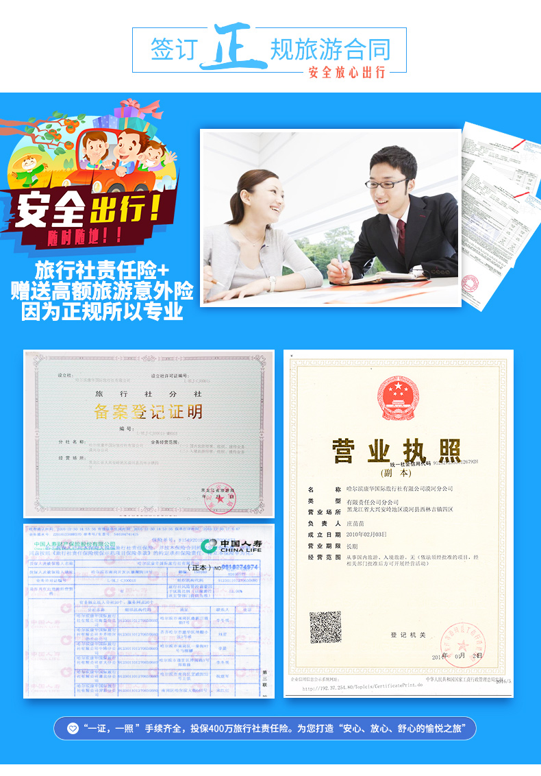 2. 保险说明:包含400万旅行社责任险,充分保障您的出行;