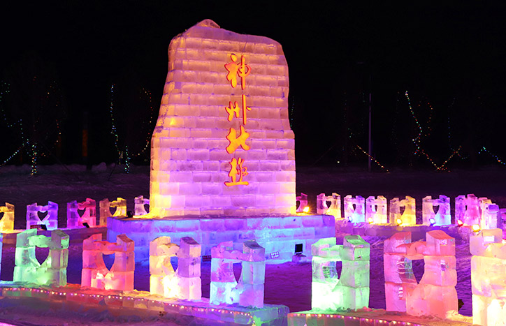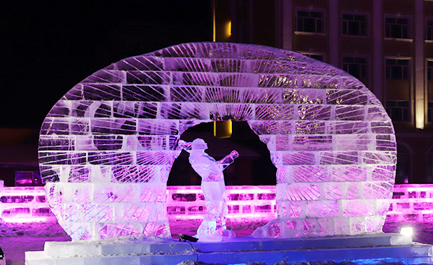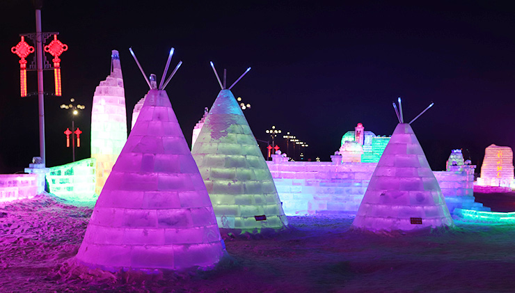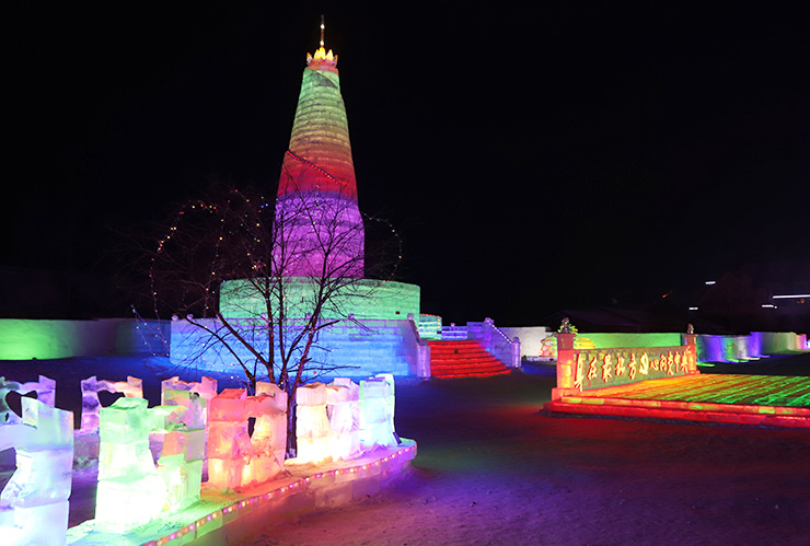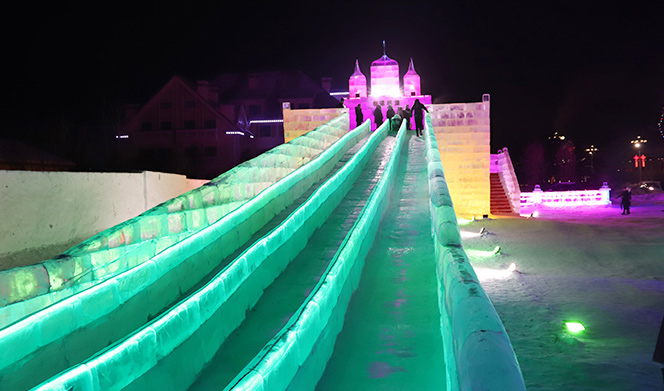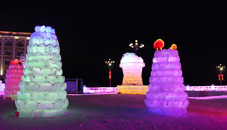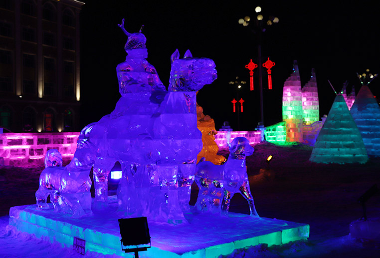 晚上的北极村格外美丽,各种冰雕艺术品,让人感觉到了冰雪童话王国,忍不住拍了无数照片: