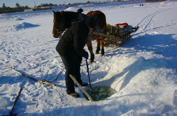 凿冰捕鱼没有想象中的那么简单,每次电视上都是看到捕鱼上来的场景,一上来全是鱼,这次观看了全过程是要凿2个几米深的冰洞,把渔网从一边到另一边都铺上,然后过一会在收网,看了几个小时,没有想象中的大场面,冬天捕鱼确实不易。